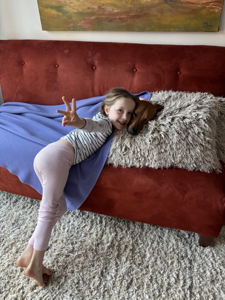 - When she wakes up, she runs out of her room, and find the first parent, and gives a gigantic hug.
