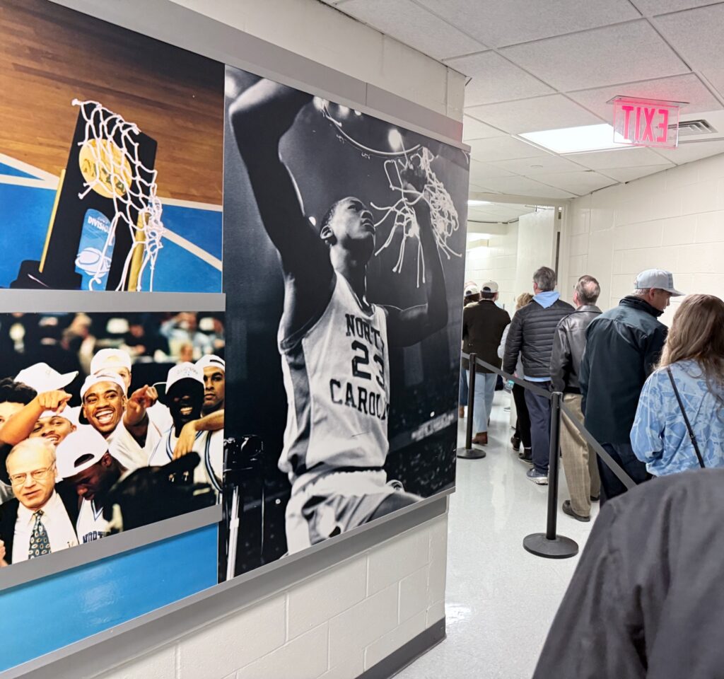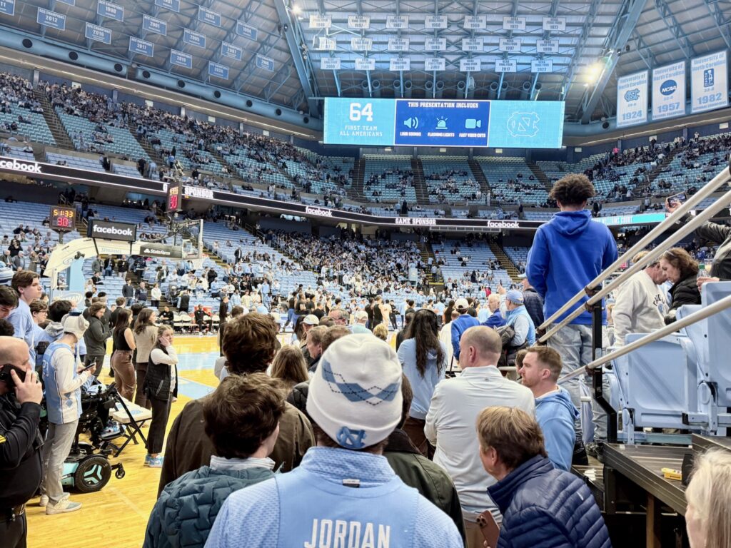 There was a quick burger and a beer, and as a very fortunate guest, we got to enter the stadium through the tunnel that the Duke team uses, passing by their locker room, and enter the stadium via the floor of the Roy Williams Court.