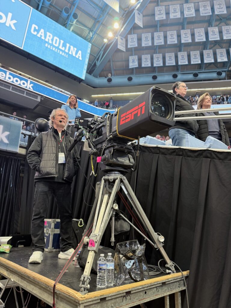 Regina showed me around the floor for a minute before getting to our seats. We almost wondered onto the set of College Gameday, but a kind but forceful lady named “Janice” yelled at us for our folly. We got to see Jay Bilas and some warmups up close before the game, which was really cool: